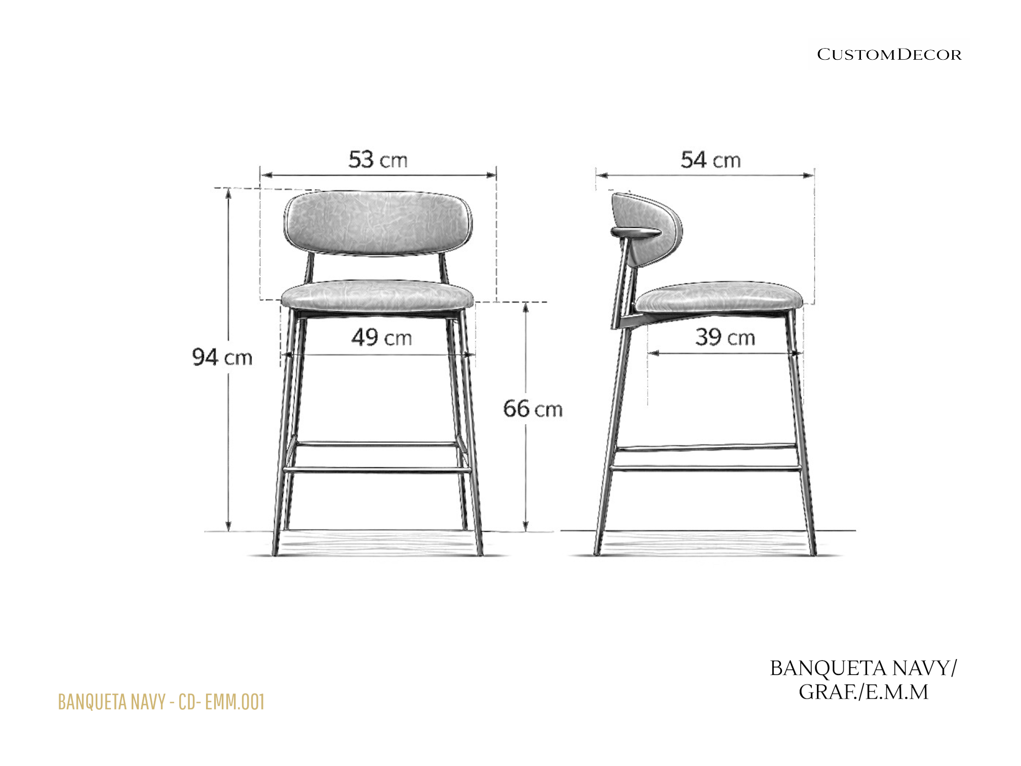 / Banqueta Navy Estofada/Pintura Grafite