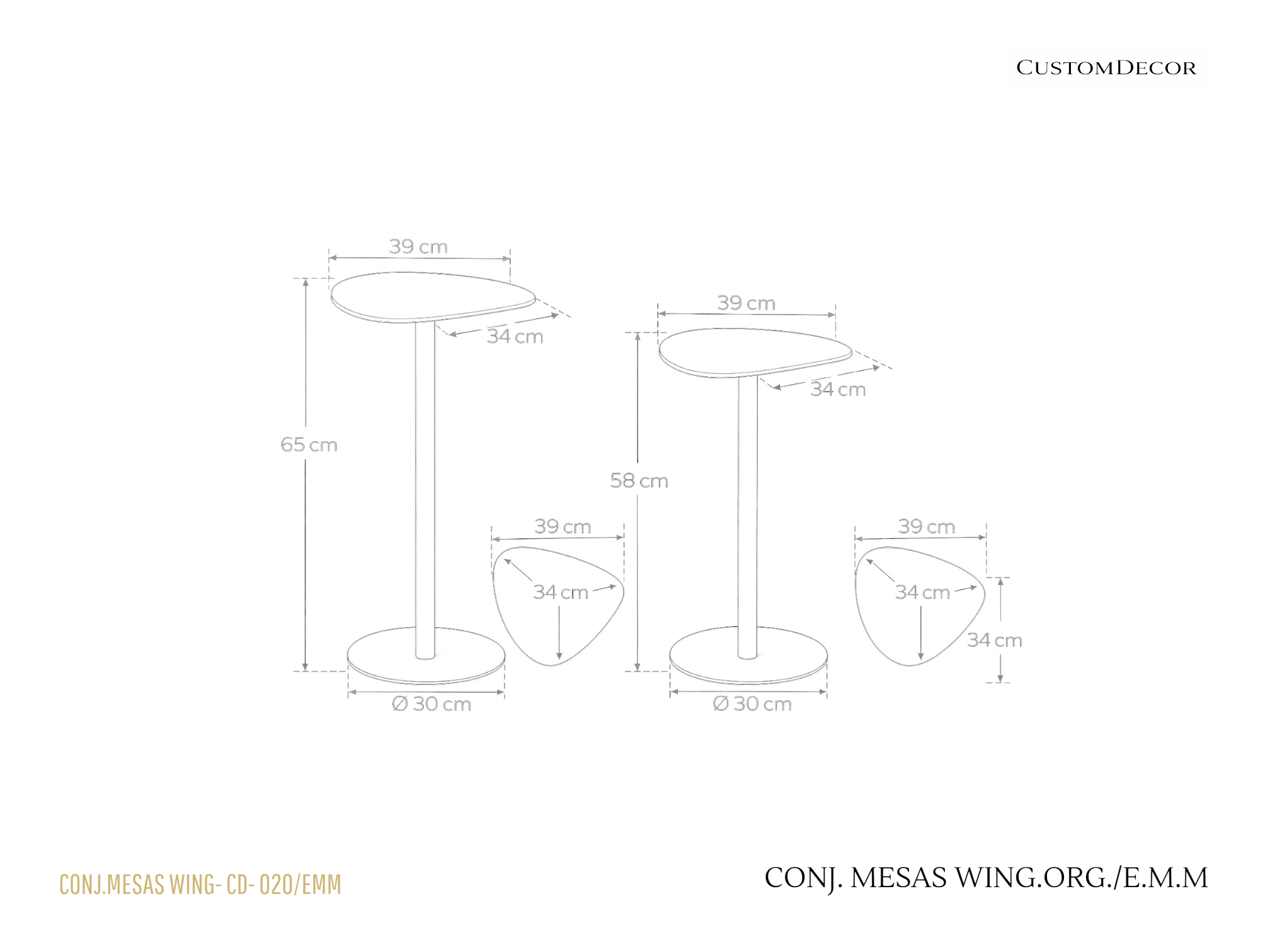 / Conjunto de Mesas Laterais Wing Orgânicas com Tampo de Madeira